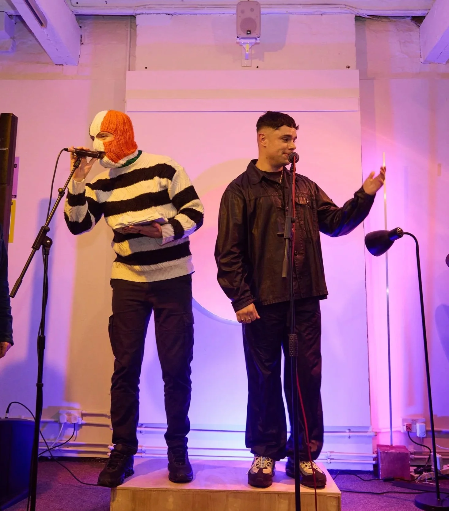 JKneecap are an Irish hip-hop trio from Belfast, Northern Ireland, composed of Mo Chara, Móglaí Bap, and DJ Próvaí, whose electrifying rap music merges Irish and English.