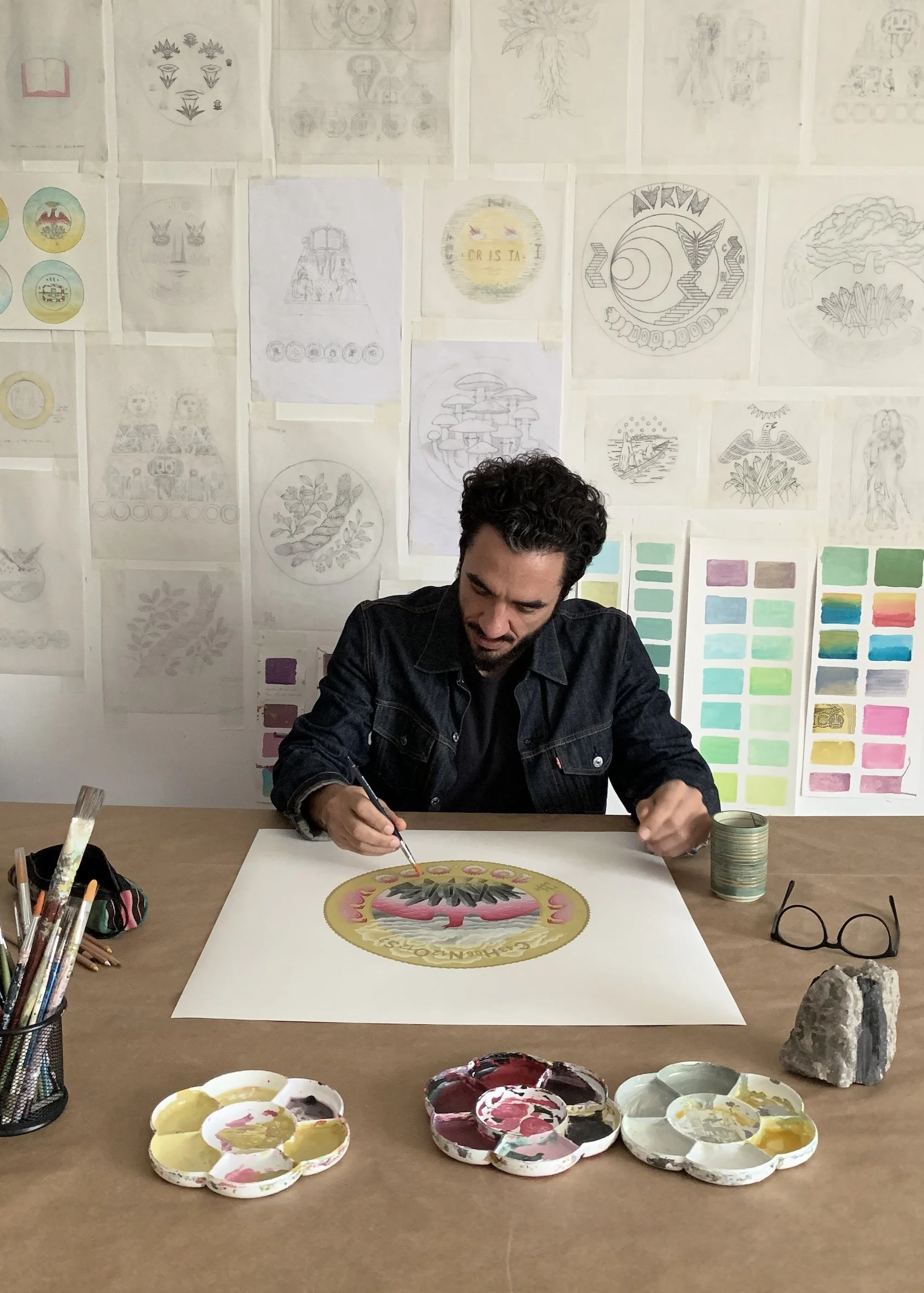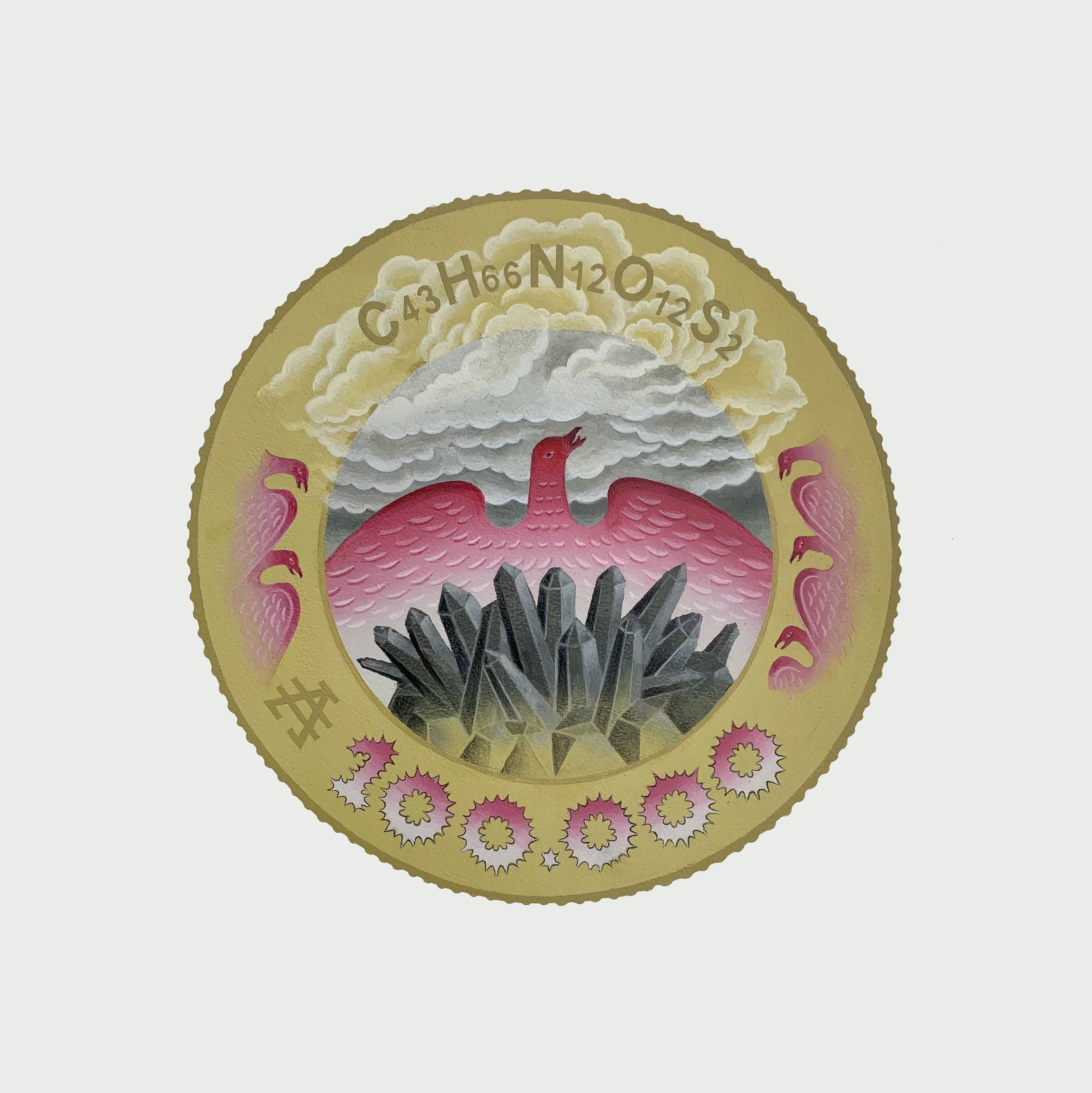 “In Greek mythology, Charon is the ferryman who guides souls across the River Styx to the underworld, demanding a coin as payment, traditionally placed in the mouth of the deceased. More than just a mythological figure, he symbolises transition and rebirth, representing transformative crossings between life, death, and self-discovery. In this new series of paintings, I seek to explore this symbolism through the creation of fantastic coins, made from a combination of minerals, substances, or symbolic elements, which may represent the essence of these journeys—whether marked by the search for healing, personal transformation, or connection with deeper dimensions of existence.”