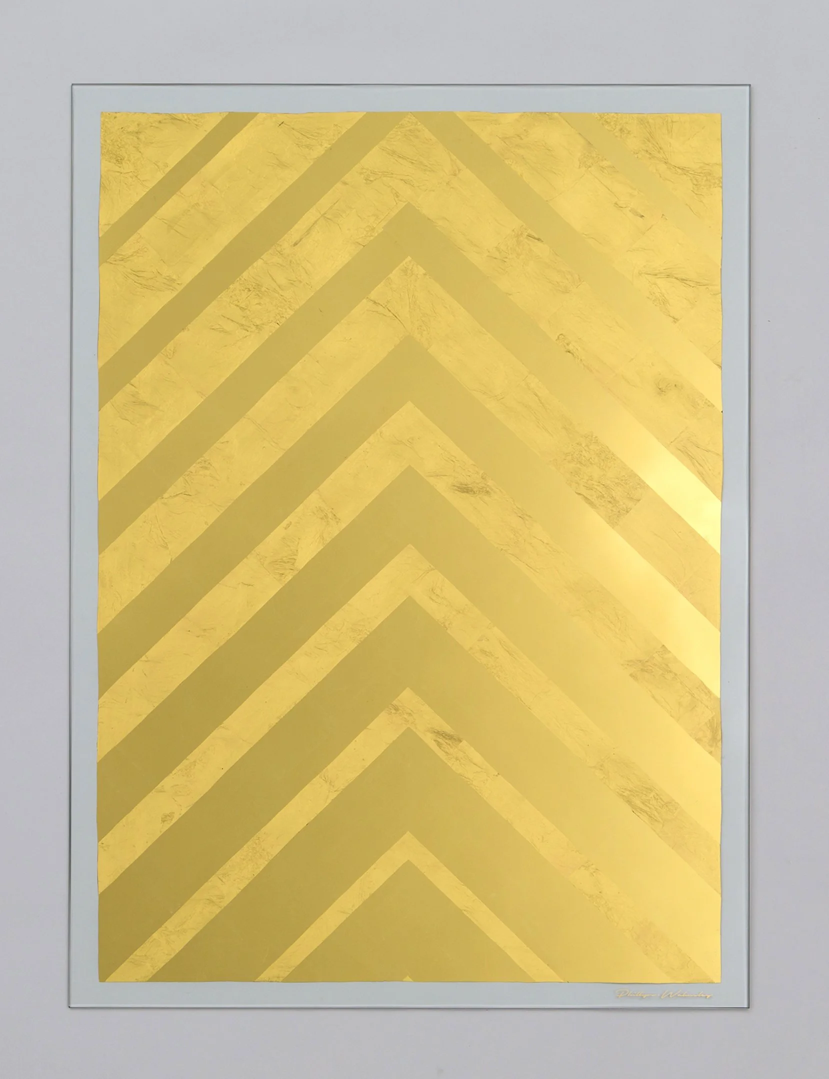 Good Vibrations, by Owen & Tori Phillips-Walmsley, 2020. Toughened Glass, 23 carat gold, enamel paint, gelatine, oil size